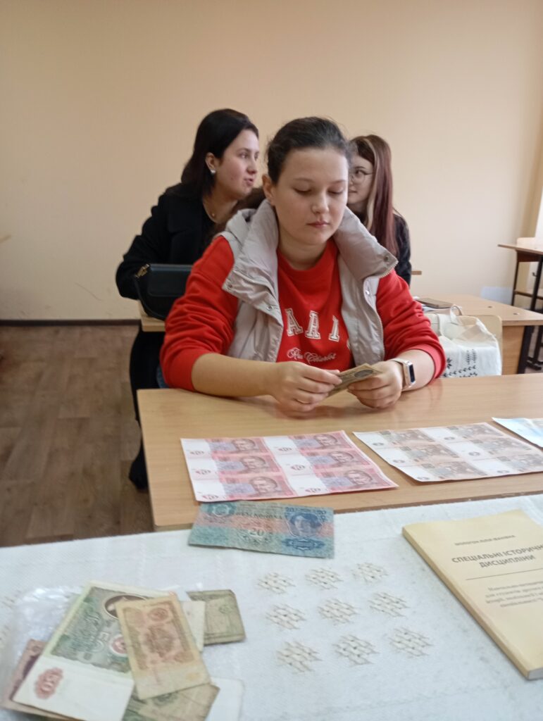 6 листопада 2025 р. відбулося заняття студентів другого курсу освітньої програми “Історія та археологія” Карпатського національного університету імені Василя Стефаника із спеціальних історичних дисциплін присвячене боністиці, що допомагає вивчати і колекціонувати паперові грошові знаки та цінні папери . Завідувач навчальної лабораторії спеціальних історичних дисциплін Саганюк Володимир Федорович ознайомив студентів із колекцією оригінальних українських банкнот, що зберігаються у фондах навчальної лабораторії та особливостями їх дизайну. Викладач цього курсу – професор кафедри історії Центральної та Східної Європи і спеціальних галузей історичної науки КНУВС Шологон Лілія Іванівна звернула увагу на основні етапи еволюції гривні від грошово-рахункової та вагової одиниці у Київській Русі до банкнот Української Народної Республіки та сучасної України.